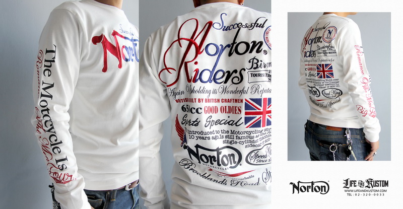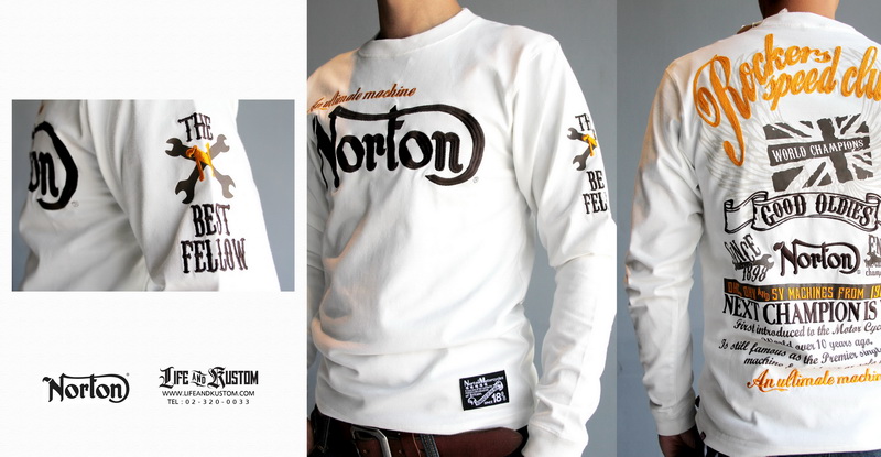 OUT OF STOCK NORTON Lockers Speed Club Long Sleeves T-Shirt PRICE: 3,xxx.- SIZE: M COLOR: White ---------------------------------------- เสื้อยืดแขนยาว NORTON ผลิตจากผ้าคอตตอน 100% ด้านหน้า-หลังเป็นงานปักและสกรีน ขนาดรอบอกประมาณ 36 นิ้ว ยาว 26 นิ้ว สวมใส่สบาย สไตล์ไบเกอร์ค่ะ