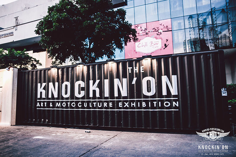 ‘The Knockin'ON Art & Motoculture Exhibition (Container 01)’ นิทรรศการศิลปะแบบผสมผสาน Street Art และ Moto Culture ของศิลปินชาวไทยและต่างชาติ บนถนน RCA หน้าร้าน 8080 Cafe เมื่อวันอาทิตย์ที่ 21 กันยายน 2557 ตั้งแต่เวลา 18.00 - 24.00 น. ซึ่งใช้ไอเดียเก๋ไก๋ เปิดตู้คอนเทนเนอร์ทำเป็นสถานที่เก็บรวบรวมผลงานต่างๆ ไว้ภายใน โดยแต่ละผลงานก็มีการเปิดให้ผู้สนใจได้จับจองซื้อหากันอีกด้วย ส่วนจะเจ๋งแค่ไหน และมีผลงานของใครบ้างนั้น เรามาติดตามชมกันดีกว่าครับ...