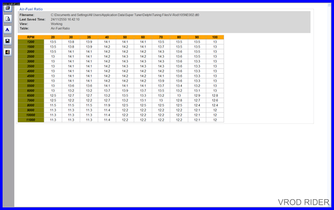 หน้าตาของตาราง แถบบนคือ % การเปิดใช้น้ำมัน แถบข้างคือค่า MAP Load