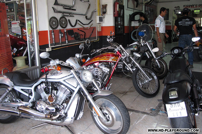 ก่อนที่จะขึ้นเครื่องกลับ กทม. ในช่วงเย็นของวันพุธที่ได้มีโอกาสไปสำรวจสถานที่ ณ จ.ภูเก็ต HDP จึงขออนุญาตพี่ซูมัน เข้าไปเยี่ยมชมร้าน West Coast Ride Thailand ที่ตั้งอยู่ริมถนนซุเปอร์ไฮเวย์จากแยก Central Festival Phuket ที่มีของที่ระลึกต่างๆ มากมาย พร้อมบริการซื้อ-ขาย-แลกเปลี่ยน-ซ่อมบำรุง รถ HD และรถยี่ห้ออื่นๆ อย่างครบวงจร ยิ่งได้ขึ้นไปเยี่ยมชมแผนกเครื่องหนังทำรองเท้าของพี่ซูมัน แล้ว เริ่มเกิดอาการอยากทำรองเท้าบูทคู่ใหม่ซักคู่ขึ้นมาทันที พี่ซูมัน เล่าให้ฟังว่า เครื่องหนังพวกนี้ ส่วนใหญ่จะมีออเดอร์มาจากต่างประเทศ เป็นส่วนหนึ่งที่จะช่วยนำรายได้เข้าประเทศอีกทาง