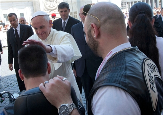 จะว่าไปแล้ว ภาพบรรยากาศที่ชาวคริสต์ศาสนิกชนพากันแห่แหนออกมาร่วมพิธีมิสซากลางแจ้งบริเวณจัตุรัสเซนต์ปีเตอร์แห่งนครัฐวาติกันถือเป็นเรื่องปกติ แต่ไม่ใช่สำหรับเมื่อวันอาทิตย์ (16 ก.ค.) ที่ผ่าน เมื่อชาวสมาชิกแก๊งฮาร์เล่ย์-เดวิดสัน กว่า 100 คัน จากทั่วโลก ที่พร้อมใจกันแต่งตัวสไตล์ไบค์เกอร์เต็มยศ ก่อนจะยกพลขี่ฮาร์เล่ย์ฯ คู่ใจ มาเข้าร่วมพิธีการสำคัญและรับพรจากสมเด็จพระสันตปาปาฟรานซิสที่ 1 ด้วย จนจัตุรัสเซนต์ปีเตอร์แทบจะกลายสภาพเป็นลานจอดมอเตอร์ไซค์คันเท่ไปเลยทีเดียว เรียกความสนใจจากผู้เข้าร่วมพิธีทั่วไปได้เป็นอย่างดี ก่อนจะยกขบวนบิดคันเร่งไปยังกรุงโรม ประเทศอิตาลี โดยขี่ผ่านสถานที่สำคัญต่าง ๆ รอบเมือง เพื่อร่วมเฉลิมฉลองครบรอบ 110 แห่งการก่อตั้งฮาร์เล่ย์-เดวิดสันอีกด้วย
