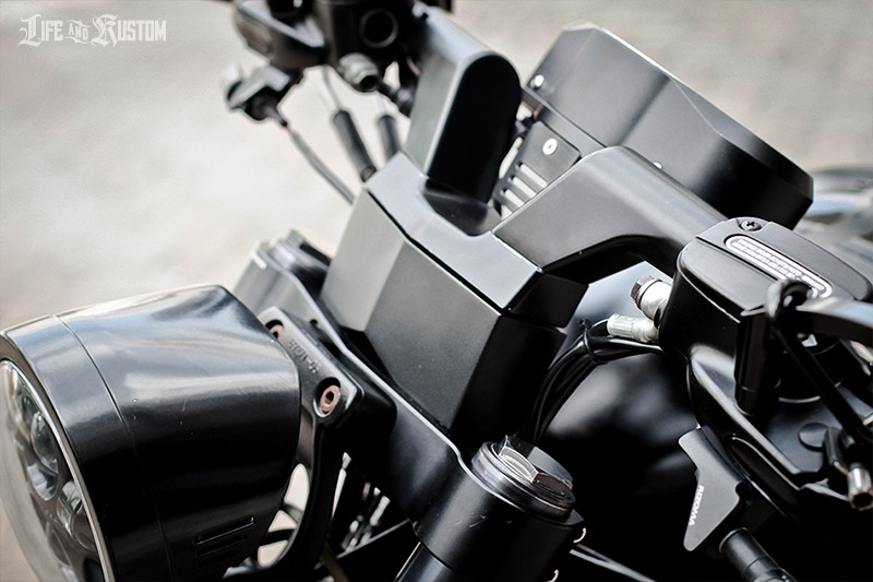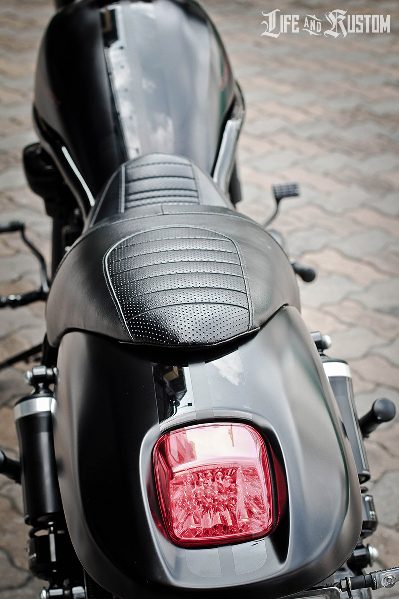 โช้คหลัง Progressive, แผงคอโช้คหน้า RIZOMA Triple Tree Kit, ไฟเลี้ยว RIZOMA, พักเท้า H-D, เบาะนั่งแต่ง, ครอบน็อต, RIZOMA Font pulley cover, ท่อ V&H Competition